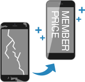 ご希望機種を会員価格でご提供いたします。修理受付終了機種に、故障や破損などが発生した場合、当社指定機種を会員価格で機種変更いただくことが可能です。※価格は機種により異なります。