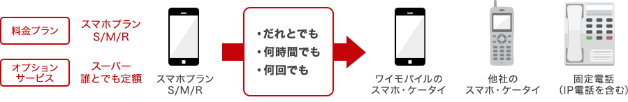 「スーパーだれとでも定額」なら、通話時間・回数無制限でかけ放題!