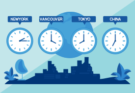 アメリカ、カナダ、中国などでの勤務管理に対応。海外子会社や駐在員の勤怠管理に便利です。