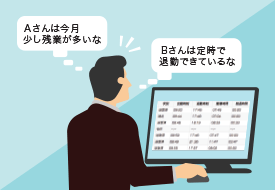 スマホやPCから出退勤の打刻をクラウド上で管理することで簡単に勤怠管理する事が可能です。タイムカードや出勤表の記入が必要なくなり、業務の効率化につながります。