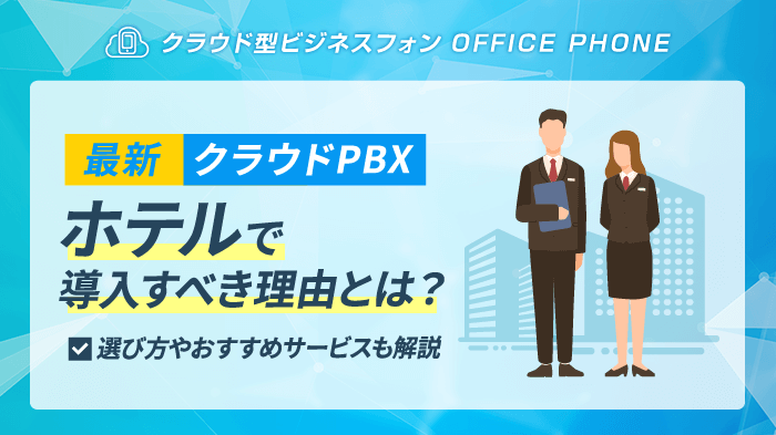 クラウドPBXをホテルで導入すべき理由|注意点やおすすめサービスも解説 業務の効率化とコスト削減のために、クラウドPBXの導入を検討している方も多いのではないでしょうか。 導入を検討している方の中にはクラウドPBXに対し、以下のような疑問を持っている方もいるかと思います。 そもそもクラウドP...