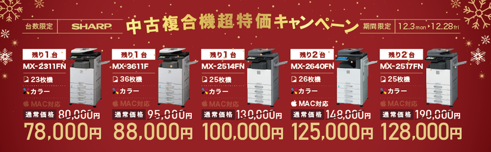また複合機は、中古から新品までリーズナブルな価格帯でご用意しているため、ご予算に応じた柔軟なご提案が可能です。