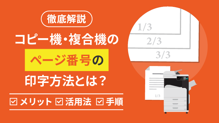 コピー機のページ番号の印字方法まとめ!便利な活用法も解説 コピー機(複合機)の便利な機能の一つ「ページ番号印字機能」をご存じでしょうか? この機能を活用すると、複数の資料を素早く整理したり、プレゼンテーションでの資料説明を分かりやすくしたりなど、業務効率化につながります。 そこ...