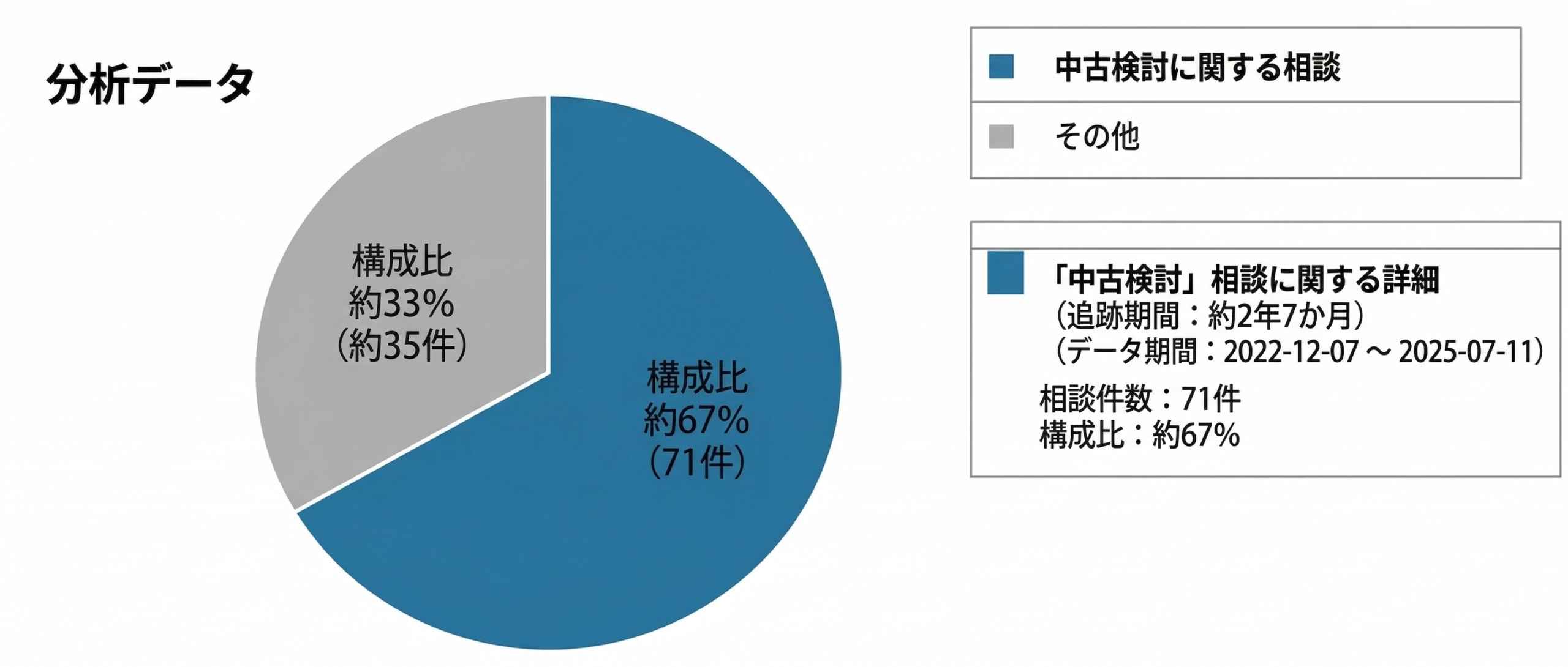 つまり、怖がられていたのは中古という選択肢ではなく、 安く見える条件を、十分な判断材料がないまま選んでしまうことです。 本記事では、2年7か月にわたる相談記録をもとに、「中古は当たり外れなのか」という問いの正体を、現場目線で整理していきます。