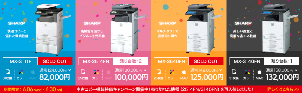 機種の詳細はこちらをご覧ください ⇒中古コピー機超特価キャンペーン
