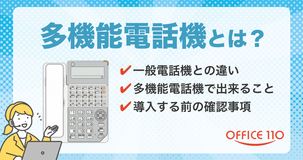 多機能電話機とは?一般電話機・ビジネスフォンとの違い、できること、導入前の確認点を解説 「多機能電話機とビジネスフォンは同じ?」「一般電話機で代用できる?」「自社に必要か判断したい」と迷っていませんか。多機能電話機は、内線や転送などの業務用機能を使いやすくした電話端末ですが、使える機能や対応回線は構成によっ...