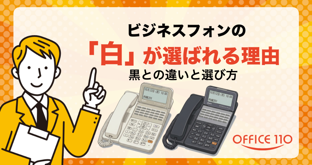 ビジネスフォンの色だけでは決めきれない場合は、設置場所の雰囲気や希望機種の条件を整理したうえで確認すると選びやすくなります。ビジネスフォン選びで迷ったら、自社に合う機種や色の考え方からOFFICE110へ相談してみてください。