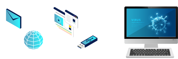 ESETなら普段お仕事でお使いのネットワーク、デバイス、メールなど様々な方法で完全するウイルス脅威から守ることができるので、PCが使えなくなる問題を防げます。
