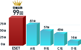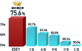 ESETセキュリティソフトは国内の大手をはじめとした各種調査で最も満足度が高く各項目でNO.1という評価をいただいており、その信頼性を評価されてきました。
