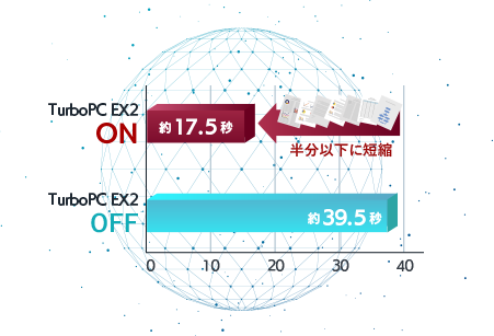 データの書き込みを最適化し、高速化するソフトウェア「ターボPC EX2」が搭載されています。パソコンからHDDへのデータ転送を効率化することで、コピーにかかる時間を短縮します。