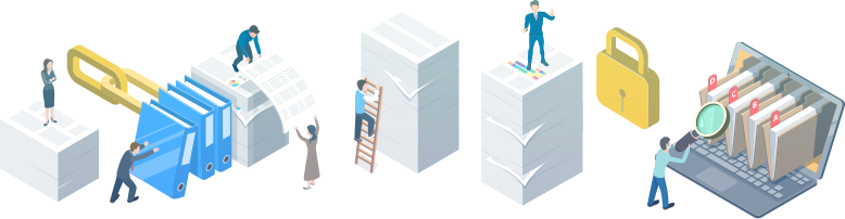 ファイルごとにアクセス権限を設定し、閲覧・編集できる機能で、社内の情報管理に優れています。また、データ暗号化や管理者役割の階層化など万全のセキュリティ対策が整っているので不正アクセスを防ぎ、社内外からのデータのやり取りを安心・簡単に。
