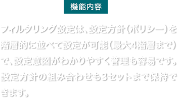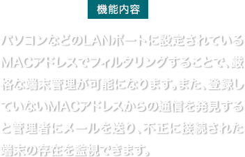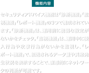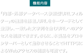 中小規模のネットワークに求められるセキュリティ要件として、「メールセキュリティー機能」と「URLフィルター機能」をファイアウォール『FWX120』のオプション機能としてライセンス提供します。当オプション機能を使うことで、ファイアウォール『FWX120』1台で統合的にセキュリティ対策を可能にします。