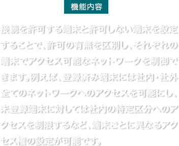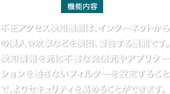 自社ネットワークへのアクセスをフィルタリングし、外部の攻撃から守ります。