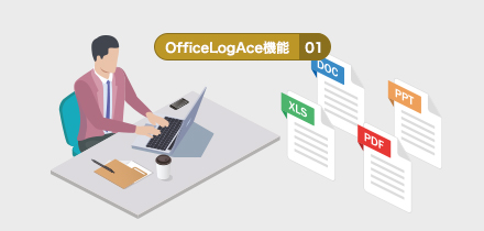 「GF1000Ⅱ」ではログ監視ソフト「OfficeLogAce」を提供しております。インストールしたPCのファイル操作履歴などを記録できるソフトウェアで、サーバーを導入したと同時にセキュリティ対策が可能になります。また、社員のPCファイル操作ログやインターネット閲覧ログ等の取得した情報をグラフ表示し、業務分析に活用することもできます。
