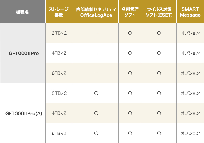 〈コントロールユニット〉USB2.0/3.0×1LAN:10/100/1000Mbps×2(LAN×1、拡張用×1)LAN:10/100Mbps×1(メンテナンスポート) 〈HDDユニット〉USB2.0/3.0×1 ※GF1000ⅡProのUSBポートはHDDユニット接続専用のため、市販のNASやキーボード接続はできません