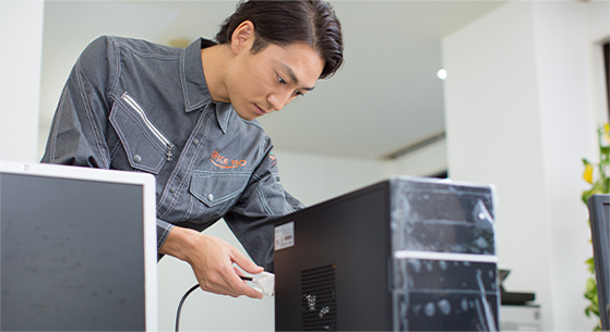 当社はオフィス機器を販売しておりますが、もともとは工事会社から始まったエンジニア集団です。現在も専門知識と技術を持ったプロが担当しておりますので、安全なネットワーク構築はもちろん、将来的な事業拡大を見据えた工事まで承ります。