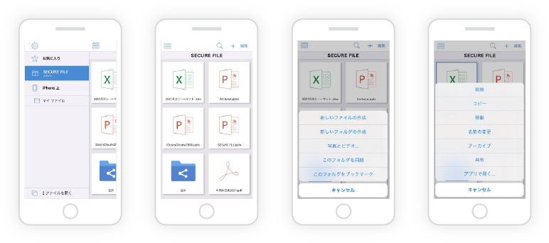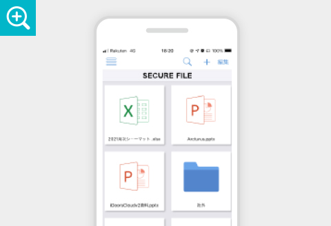 ユーザーが必要なときにどこでもモバイルデバイスでフォルダ作成・ファイル同期・ファイル編集もできるため、PCが開けないときちょっとした合間に追記などが可能です。