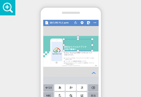 Microsoft Officeと連携し、いつどこにいてもファイルの編集や共有ができます。また、PPTのスライドショー表示も可能なので、外出先でもスムーズな業務ができます。