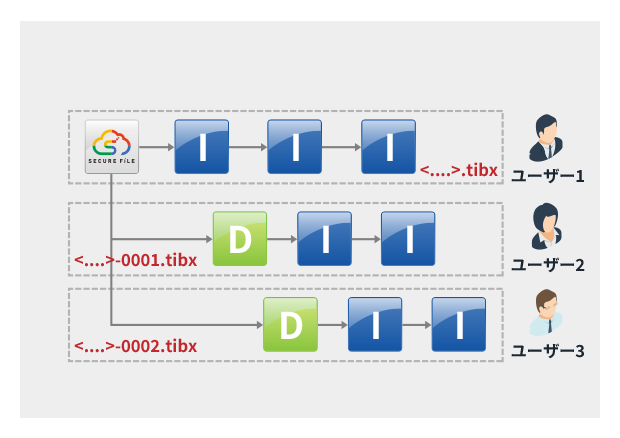 バックアップされる全てのデータは独自プロトコル(tibx)による通信を採用しており、悪質なウイルス感染から保護されたセキュアなアクセス環境を提供しています。