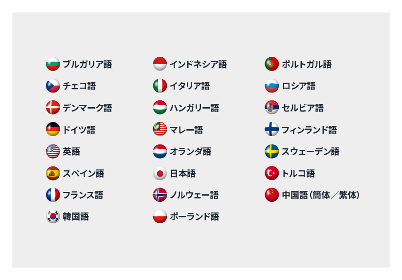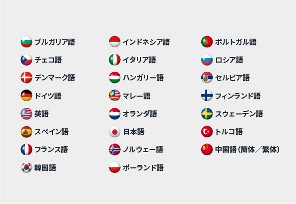 23言語をサポートしており、様々な言語をお使いの方でもご利用いただけるようになっております。
