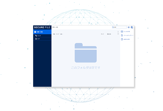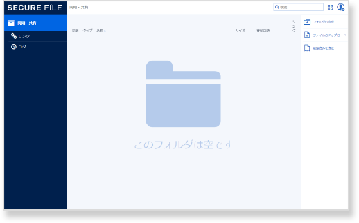 誰でもわかりやすいシンプルな画面のユーザーインターフェイスになっているので、直感的な操作が可能です。ファイルのアップロード・ダウンロードがとても簡単にできます。
