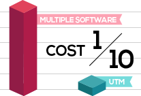 UTMは複数セキュリティソフトを導入するよりもコストが10分の1程度で済みます。また、1台だけで済むので運用コストも低価格です。
