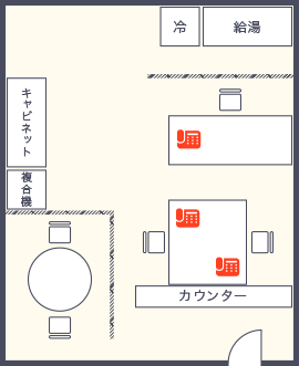 各デスクに電話機を1台づつ設置。FAXを1台設置。 床の素材により綺麗な仕上がりになるよう、材料を使い分け設置。