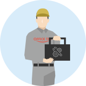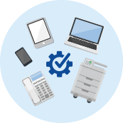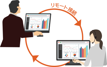 お客様のオフィス機器の設定変更や操作補助、 不具合が起きたときの原因調査をリモートで行います。VPN環境でアクセスするため、セキュアな環境でサーピスを受けられます。