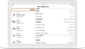 ネットワークに接続されている全てのIT機器(PC、ルーター、UTM、IP電話など)を一元管理します。収集された機器情報は自動的にリスト化され、常に新しい情報に更新されます。