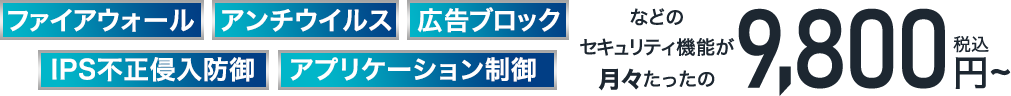 UTMにはIPSやアンチウィルスといった複数の異なるセキュリティ機能が⼊っており、どんなサイバー攻撃からでも守ります。